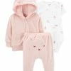 He’s got mad love for adidas. This baby boys three-piece outfit says it loud and proud. The track jacket goes long on the logos for a sporty look. The soft cotton onesie is easy to take on and off. He’ll be comfortable for nonstop play in the plush French terry pants and jacket.