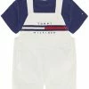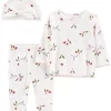 - Pants: elastic waistband; stripes at sides
