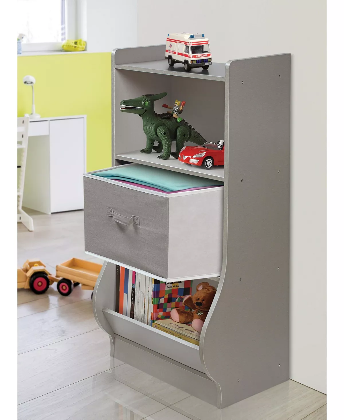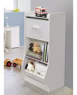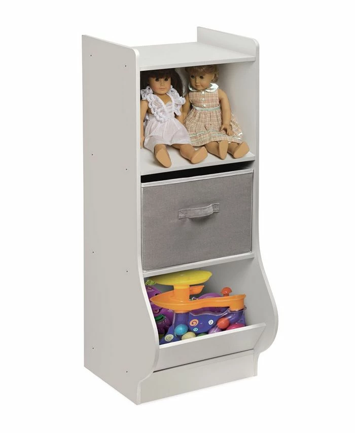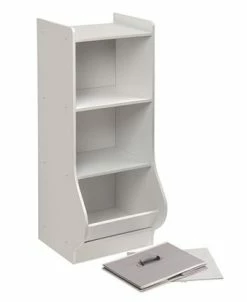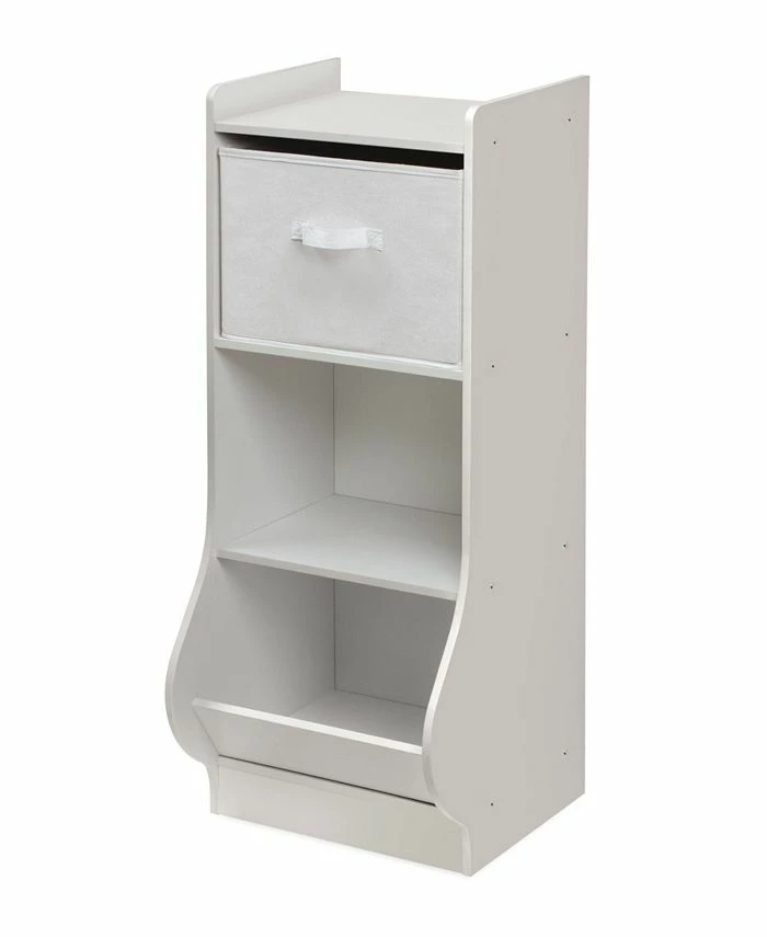 The Upright Storage Nook is perfect for organizing small spaces. Includes one removable storage basket, two shelves, and one angled bin.