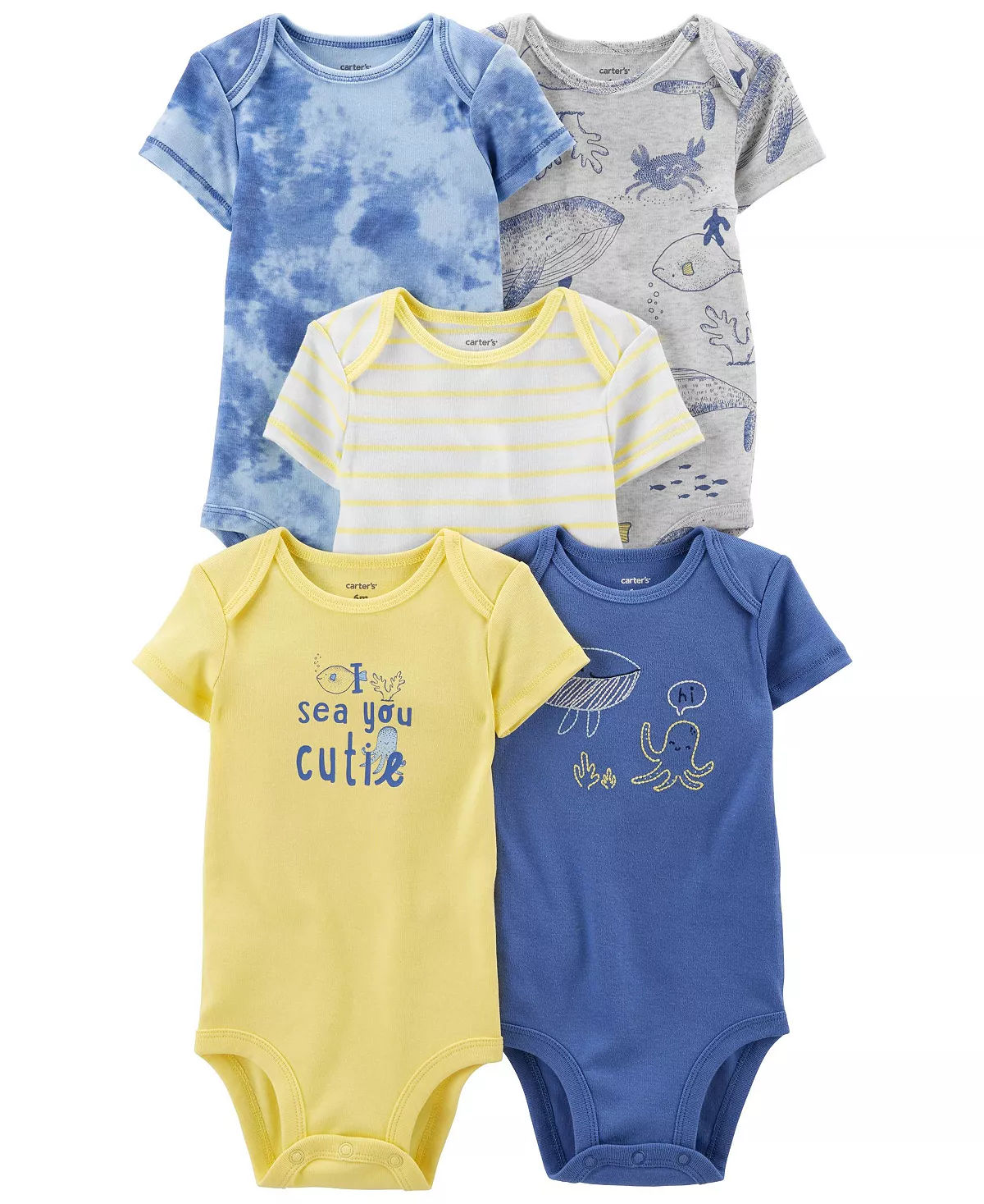Designed with super soft cotton and lots of love, these aww-dorable short-sleeve bodysuits are the perfect starters to any little outfit.