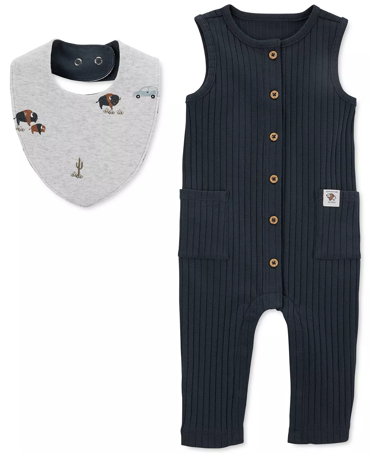 Designed with strong snaps at the legs, this sweet jumpsuit from Carter’s pairs with a bandana bib for a super cute look.
