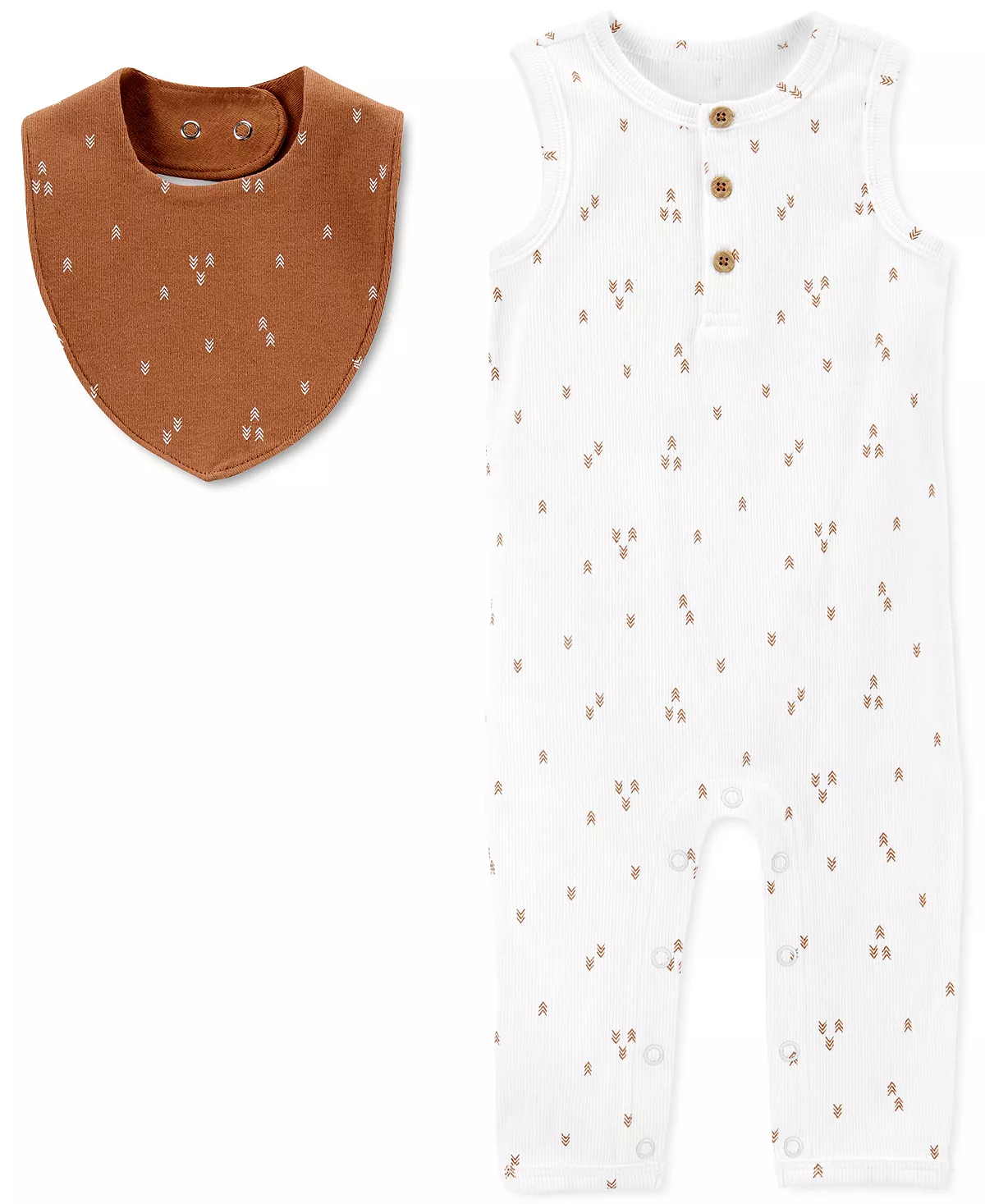 Designed with easy snaps at the legs, this jumpsuit from Carter’s pairs with a cute bandana bib.