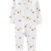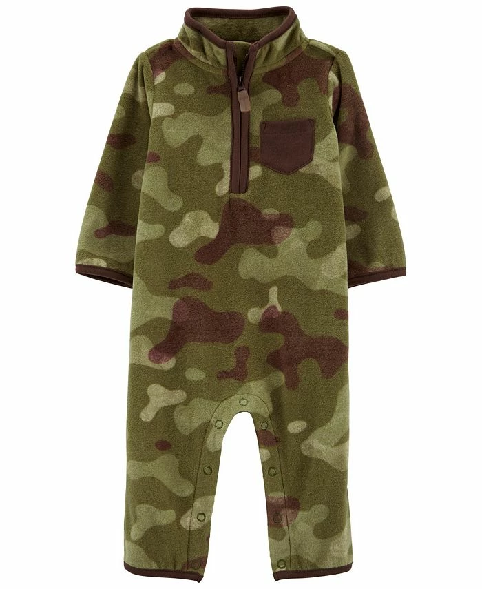 Complete with all over camo, this jumpsuit gets baby out the door in a snap.