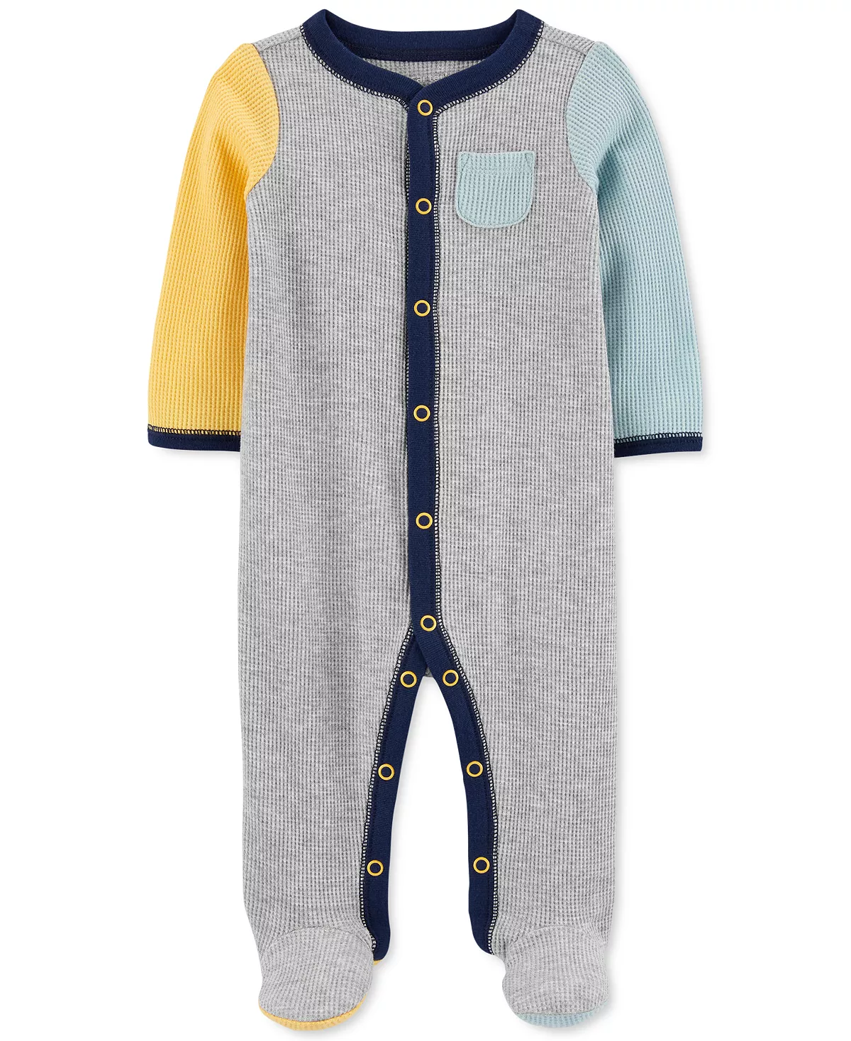 Carter’s makes sure baby stays comfy and warm all day with this cozy coverall featuring colorful colorblocking.