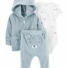 Baby boy is styled and ready for a day in the warm sun with this shorts set from Carter’s. This 3-piece set has everything you need for the sunny season – a French terry pullover layered over a sleeveless bodysuit and matching shorts.