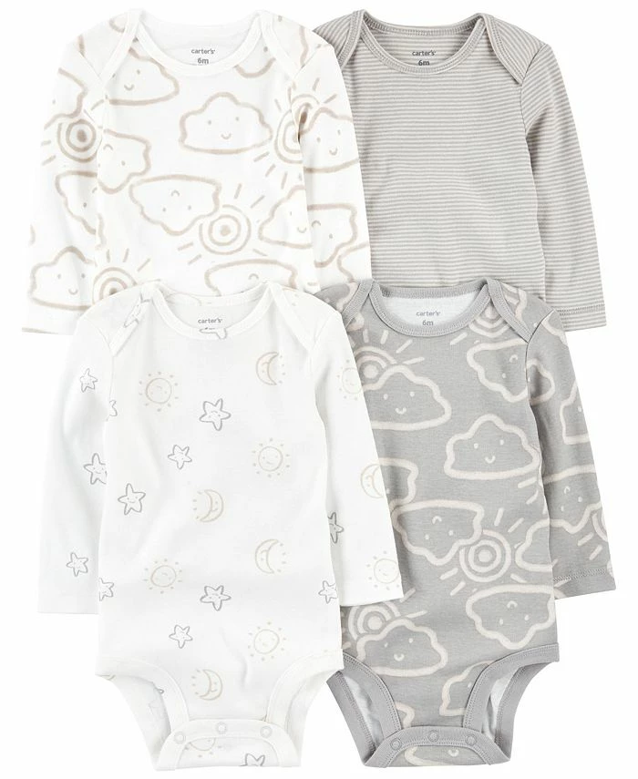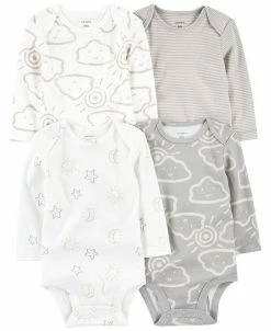 Stock up on four bodysuits with overlap shoulders, perfect for baby.