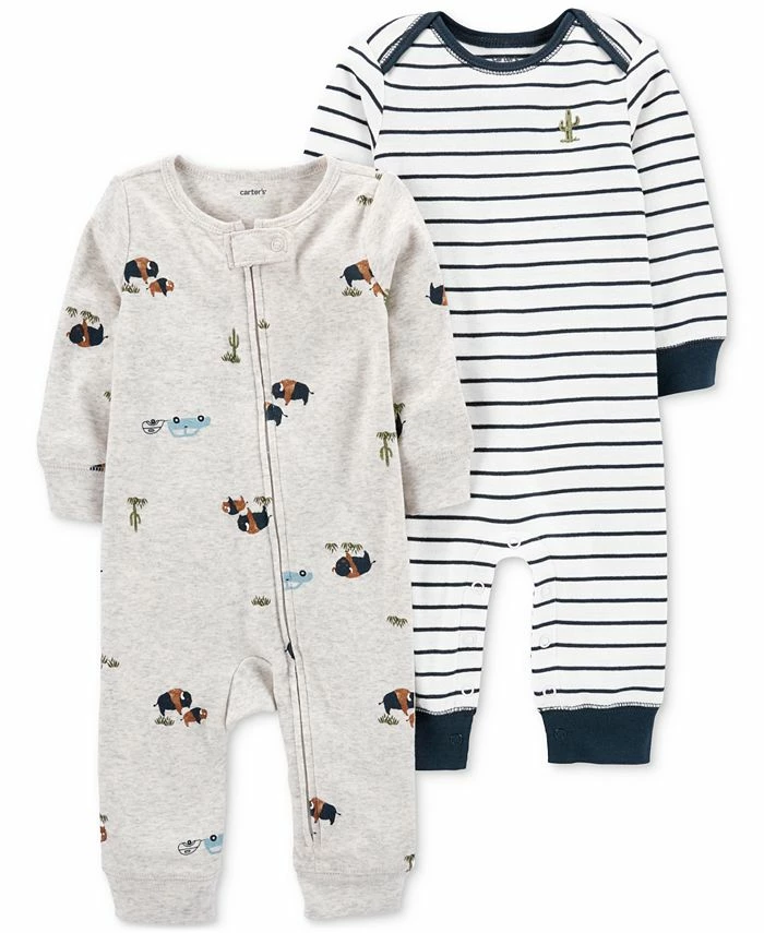 One that zips and one that snaps, this two pack of cotton jumpsuits from Carter’s feature adorable prints and is perfect for stocking up.