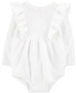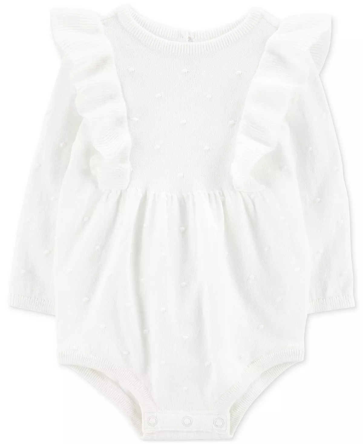Add a little flair to her cuddly look with the fun ruffled trim featured on this super-soft cotton bodysuit from Carter’s.