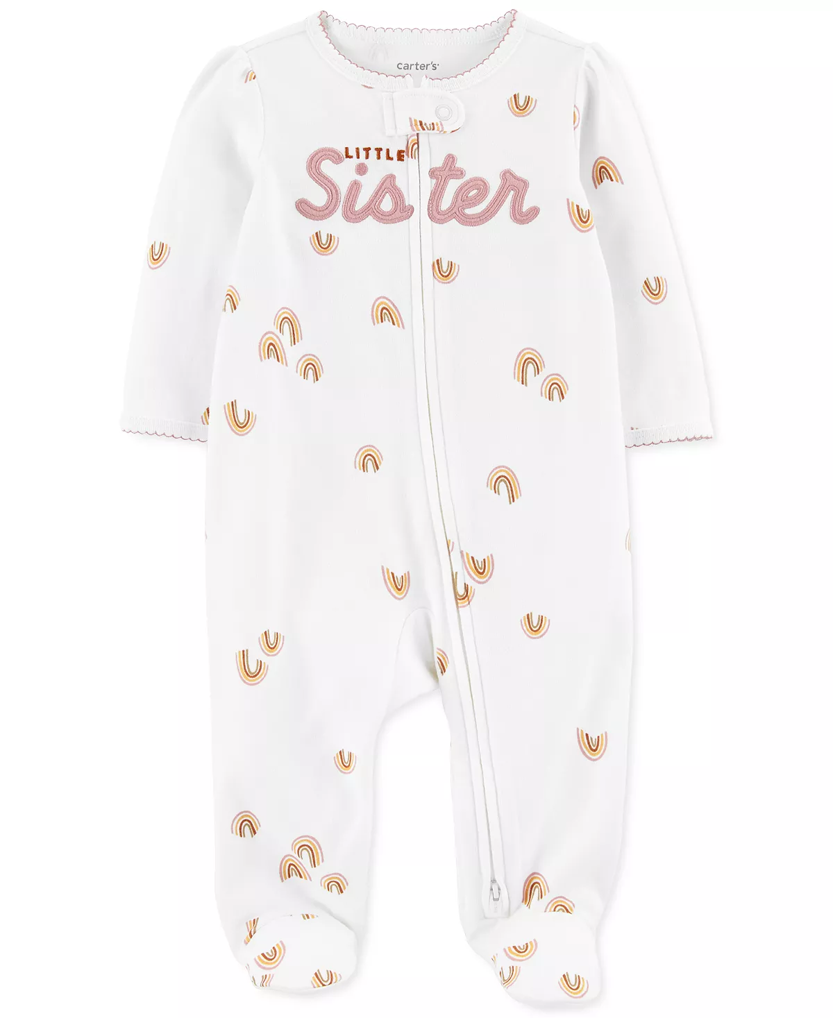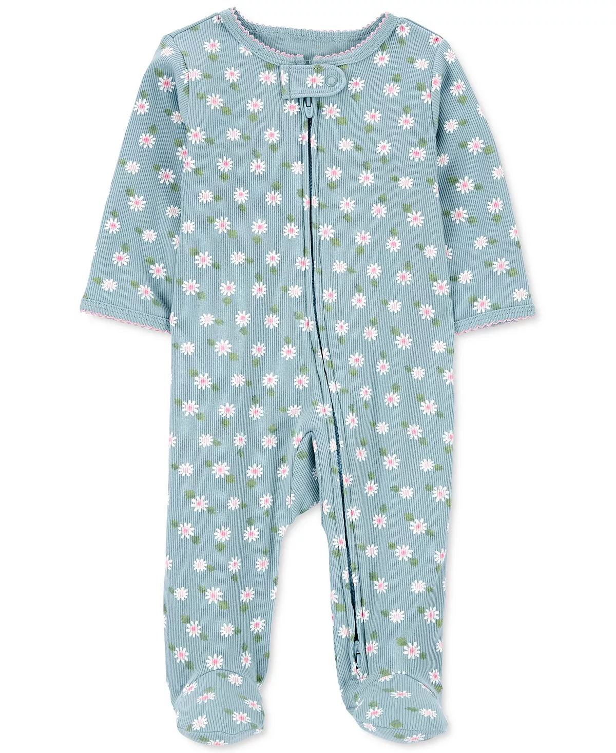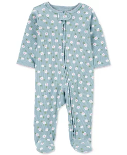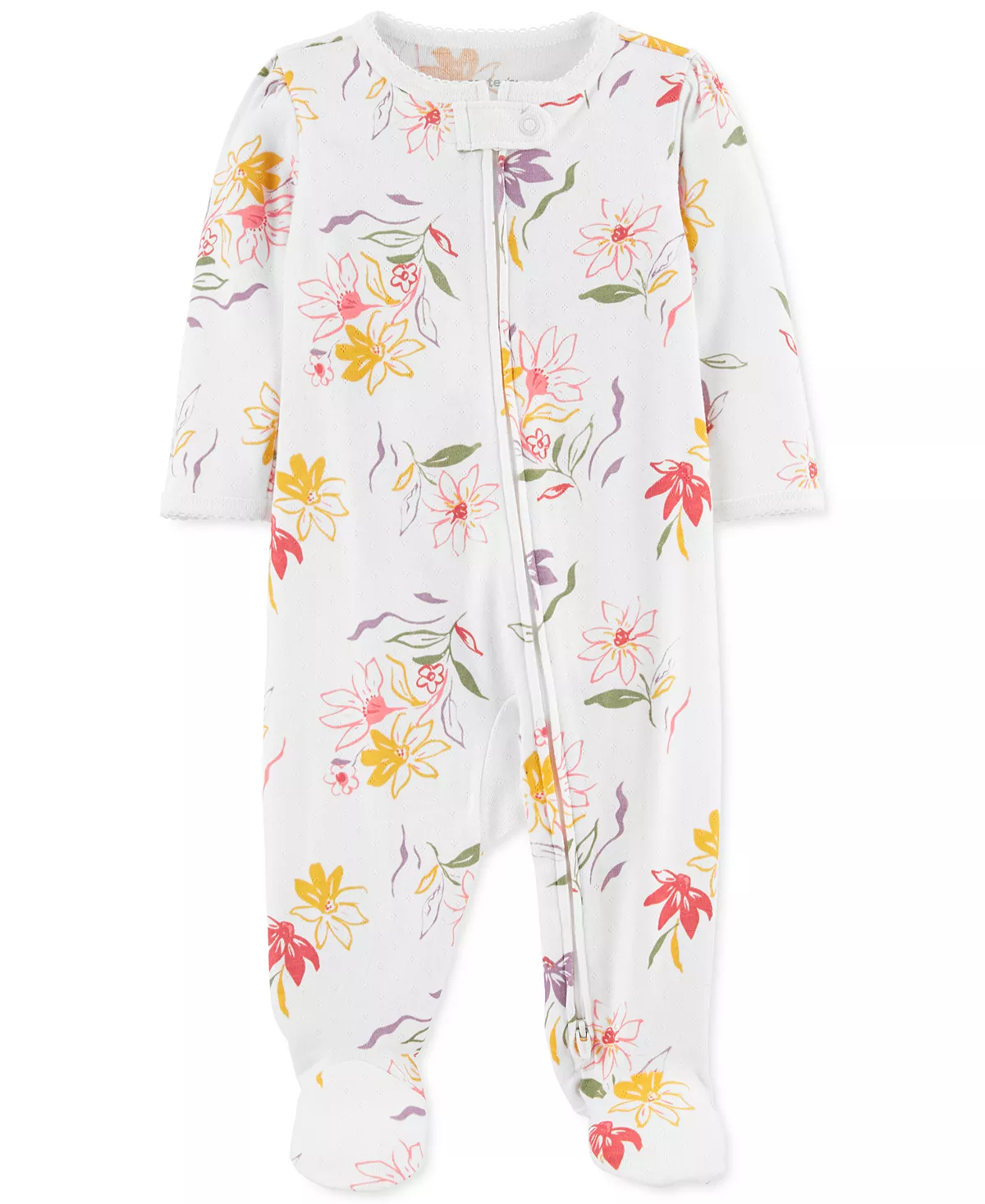 Carter’s decorated this soft cotton coverall with sprays of pretty flowers for a sweet and comfy look for baby girl.