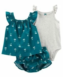 Stock up on three cute pieces for your little cutie, including a sleeveless top, bodysuit and a pair of easy-on shorts.