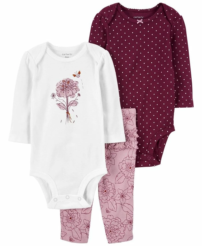 Crafted in snuggly soft fabric, this set is complete with two bodysuits and a pair of easy-on pants.