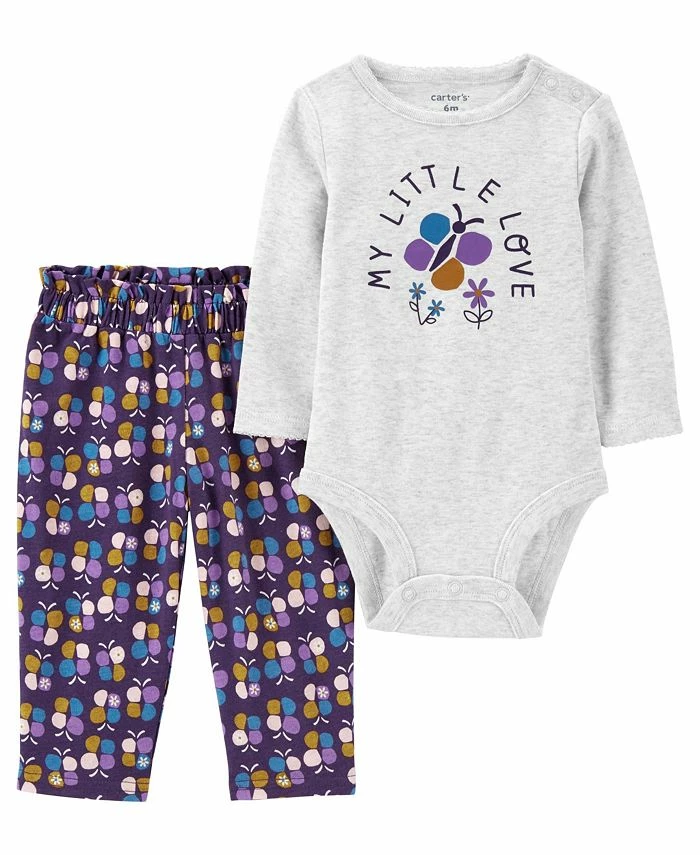 Crafted in a soft cotton blend with a cute butterfly print, this bodysuit pairs with easy on pants.