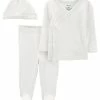 Designed with three cute pieces in one, this set is complete with a quilted cardigan, short-sleeve bodysuit and a pair of pull-on pants.