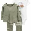 Crafted in soft cotton with three sweet pieces, this set from Carter’s is complete with two short-sleeve bodysuits and a pair of easy-on pants.