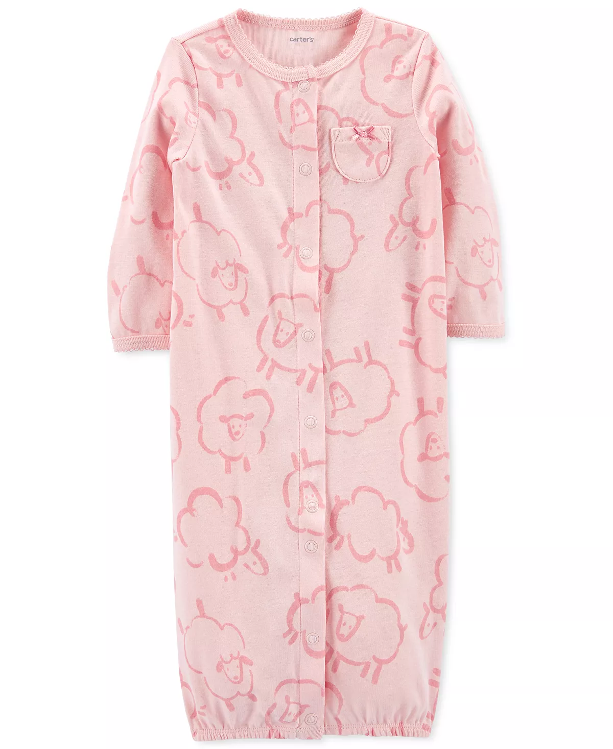 - Onesie: strong snaps keep up with wear, wash, repeat; front pocket; un-snaps to become a gown