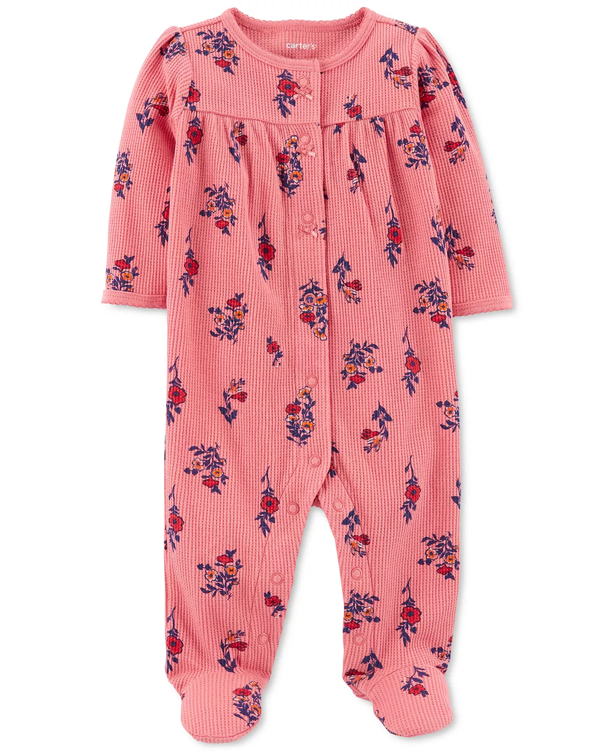 Designed for all-day comfort, this footed coverall from Carter’s is styled in soft cotton covered with a darling print.