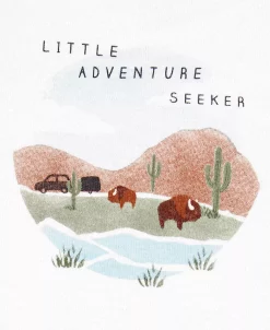 - Bodysuit: crewneck; lap shoulders; graphic at front; snaps at bottom