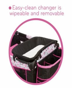 The perfect mini nursery, either at home or on the go, the Disney Sweet Wonder Play Yard has multiple features to keep baby happy and comfortable. The newborn bassinet is perfect for your resting baby and features open-view breathable mesh so you have a good view from anywhere in the room. The toy arch features adorable Disney toys to delight and amuse your own little wonder while they’re awake. The changer is easy to clean thanks to a wipeable pad and includes a deluxe organizer that lets parents keep changing necessities easily within reach. There are two wheels, for easy room to room mobility. For longer trips, the included carry bag is great for packing it up and taking this play yard on the go.