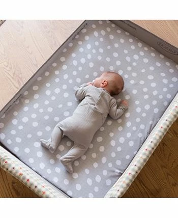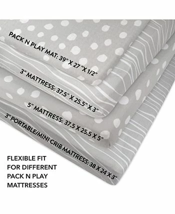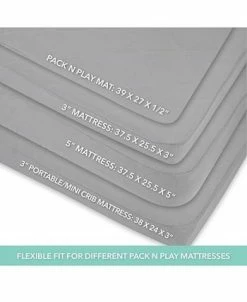 - Adjustable Fit- Perfect for standard pack n’ play, mini crib, portable crib and playard mattresses, up to 5″ thick sheet