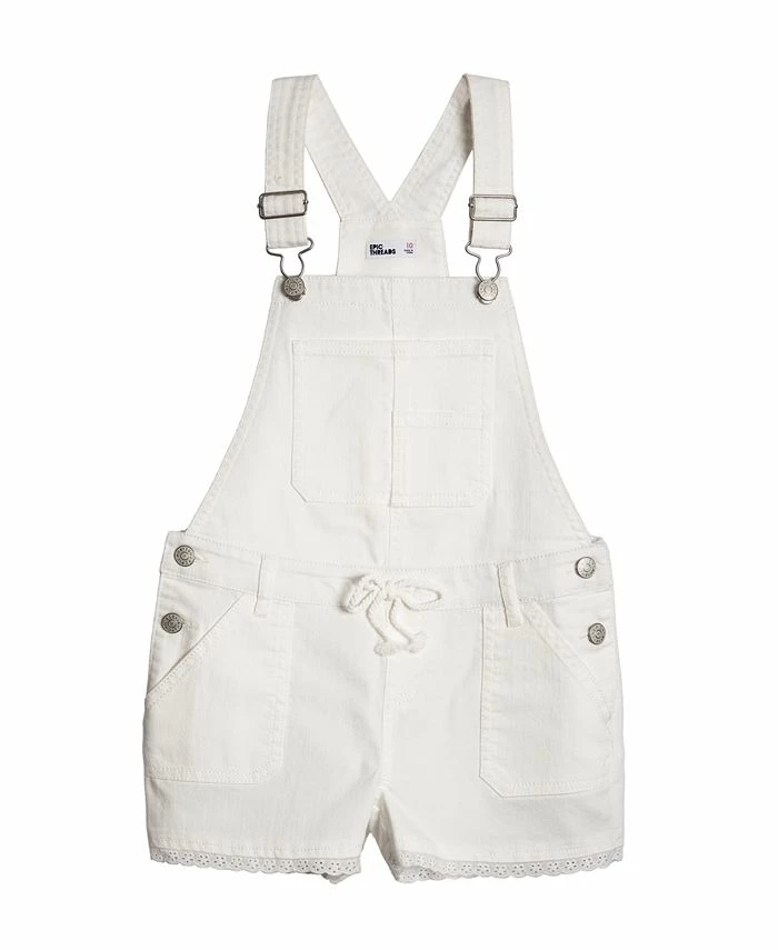 Lace trim and a rope drawcord at the waist add special details to this casual stretch twill shortall from Epic Threads.