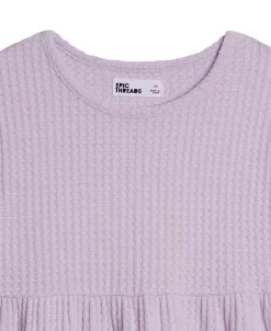 This soft and comfy tiered waffle knit dress from Epic Threads will become her wardrobe favorite this season. With a matching scrunch for extra style, this set is comfortable and functional making her ready for whatever comes her way! Available in a variety of colors.