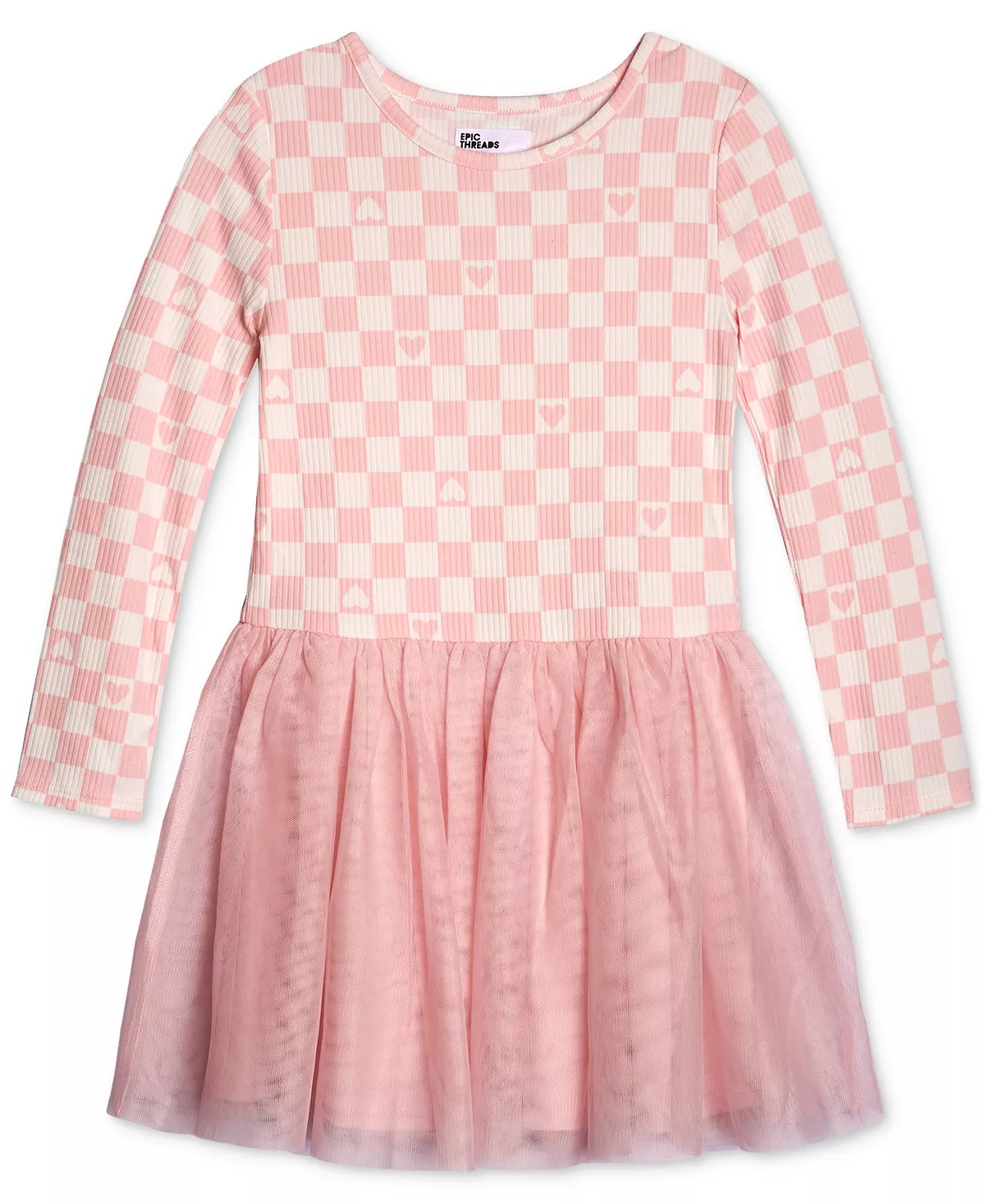 A soft fabric, a cute print and a fun tutu skirt come together to create this stylish long sleeve dress from Epic Threads.