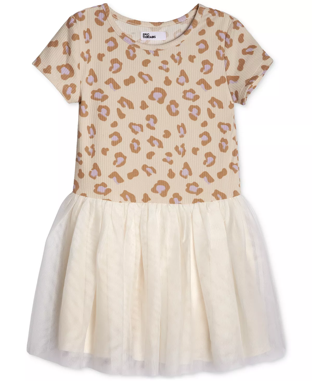 Look and feel your best in this stylish short sleeve dress from Epic Threads that has a soft fabric, a cute print and a fun tutu skirt.