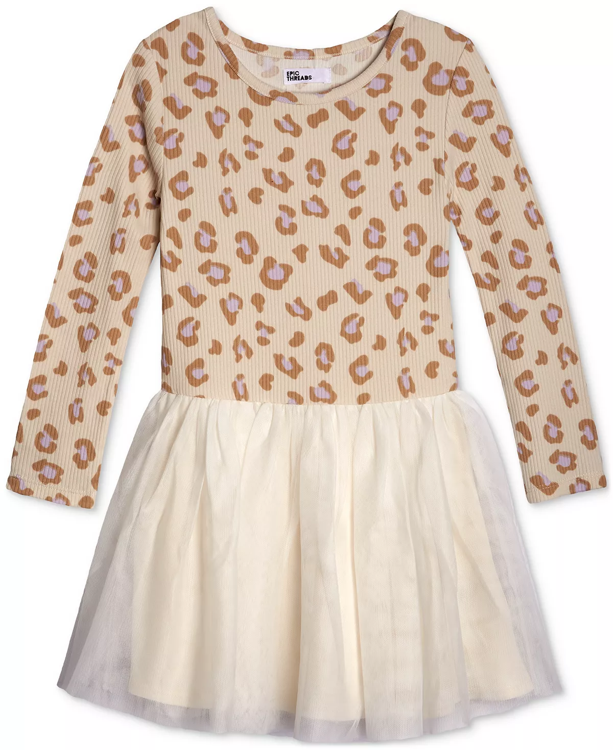 Look and feel your best in this stylish long sleeve dress from Epic Threads that has a soft fabric, a cute print and a fun tutu skirt.