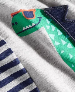 Capture cuteness in this soft one-piece from First Impressions, featuring a colorblocked design and dinosaur graphic.