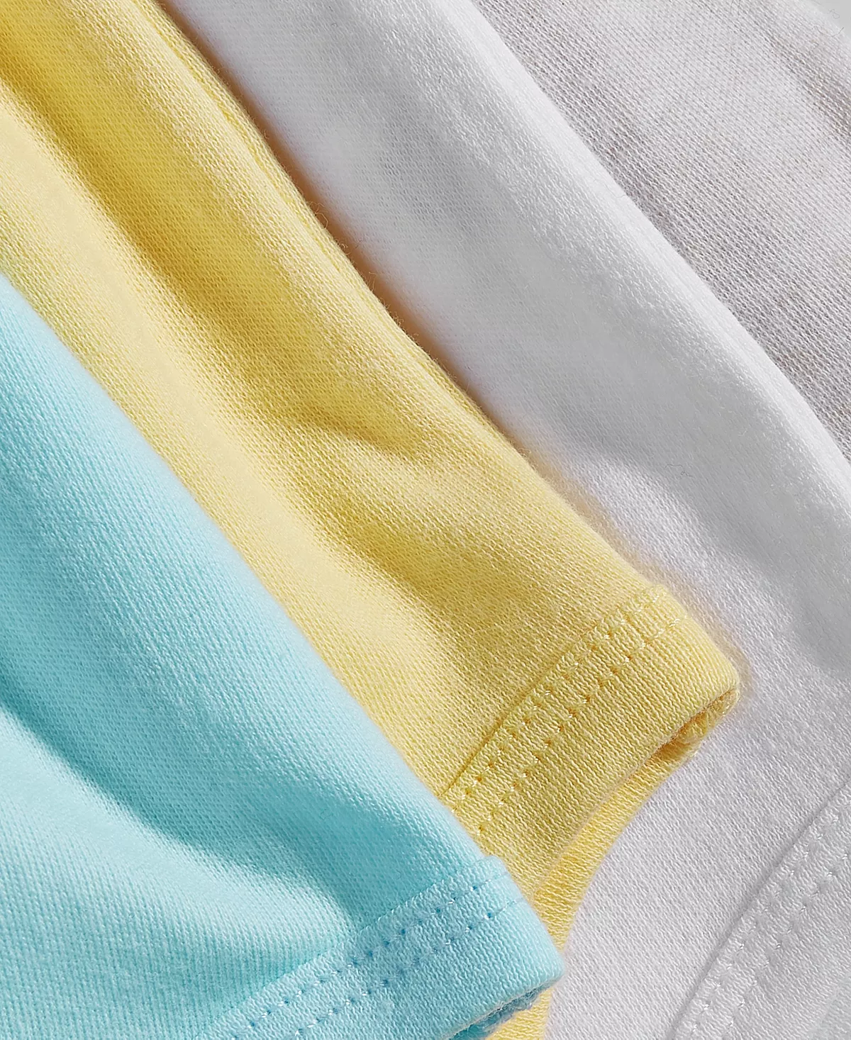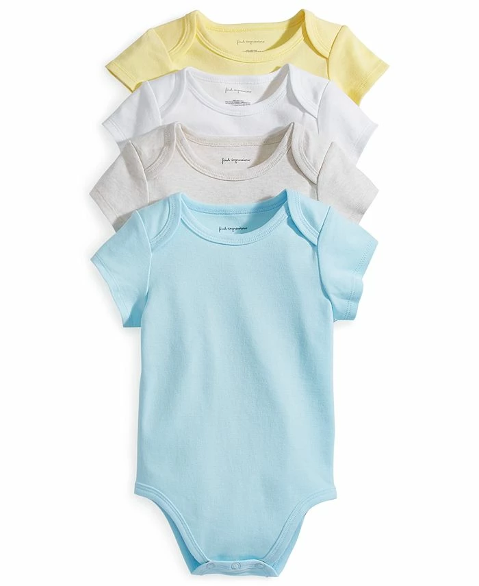 First Impressions stocks baby up with go-to essentials with this colorful four-pack of short-sleeve bodysuits.