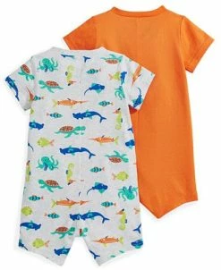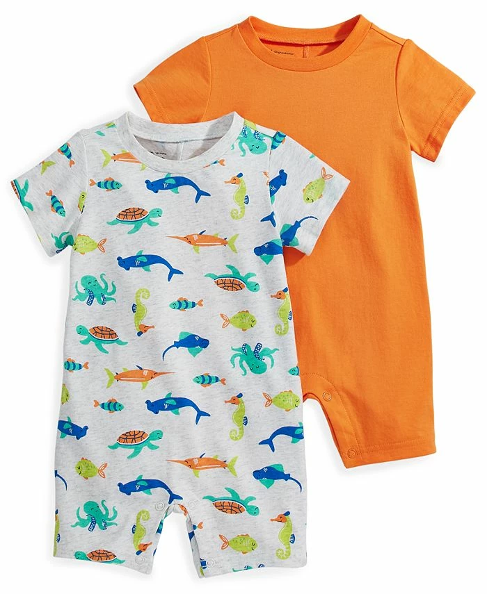 A sunny solid and pattern combine in this two-pack of rompers from First Impressions.