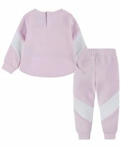 - Bottoms: elastic at waist; faux fly and button closure; belt loops