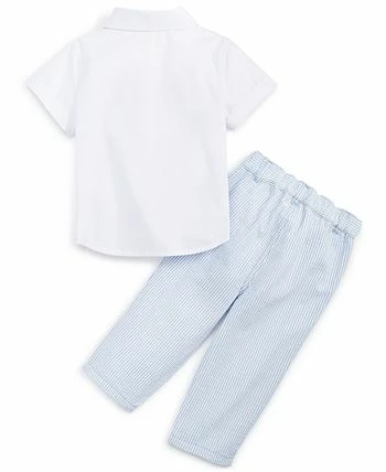 A sweet two-piece set from First Impressions, designed with a short-sleeve shirt and seersucker pants.