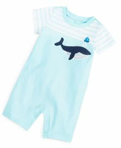 Capture cuteness in this soft one-piece from First Impressions, featuring stripes and a fun whale graphic at the front.