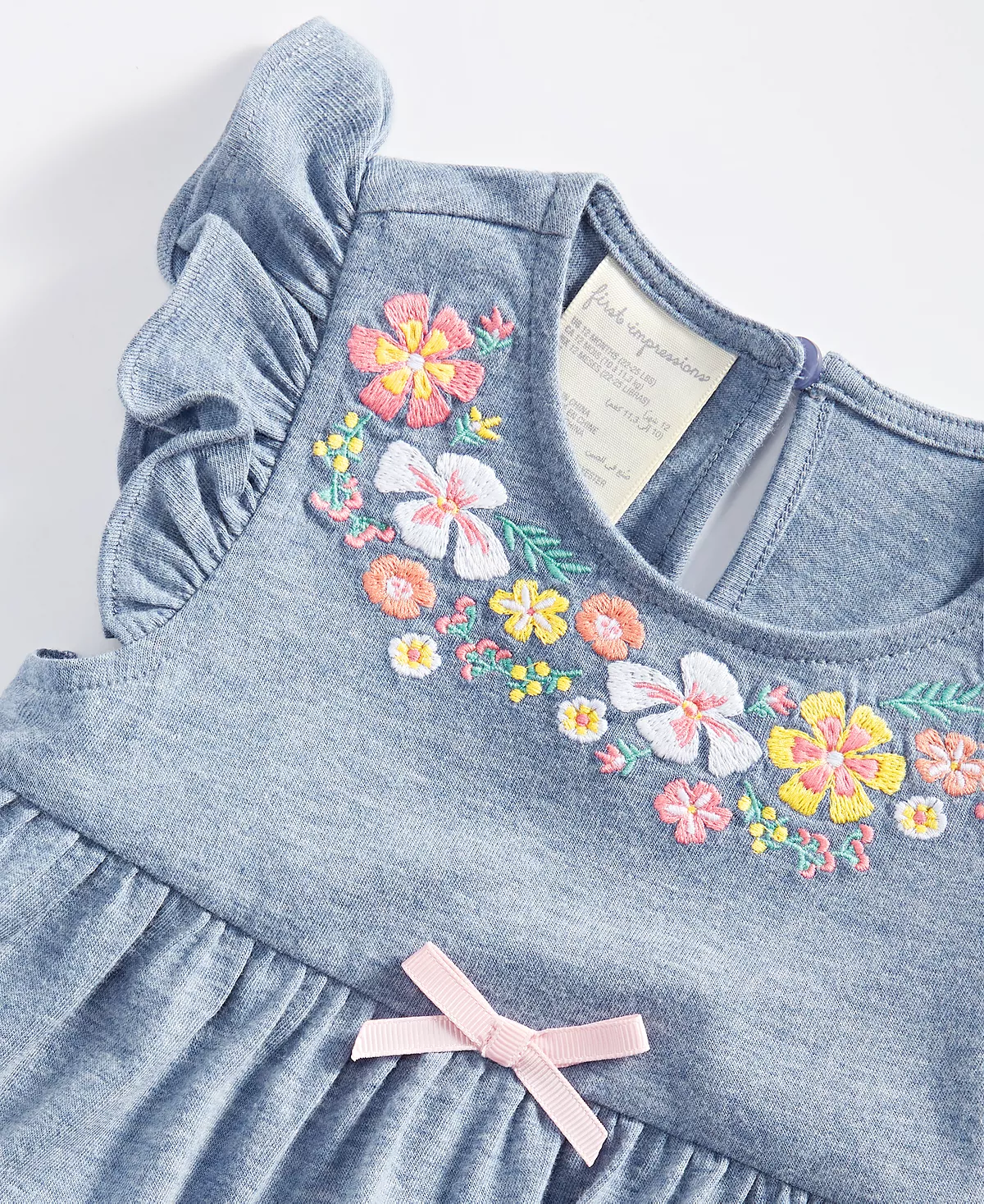 Soft and sweet, this First Impressions one-piece sunsuit features decorative details and a snap closure for easy changes.