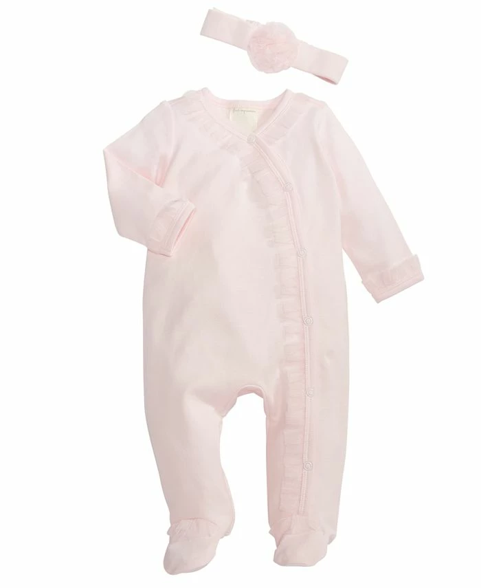 Total sweetness for your precious sweetie. Ruffled tulle trim adds extra-sweet style to First Impressions’ cotton footie. A matching headband adds a picture-perfect finishing touch.