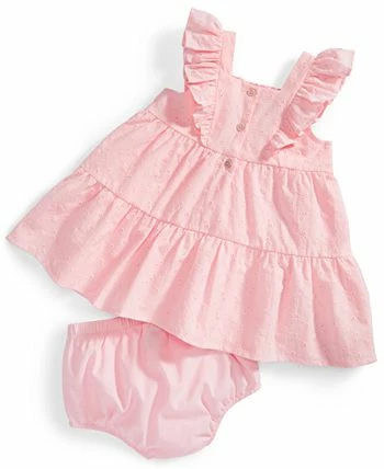 A fun First Impressions two-piece set your little one will love to wear, featuring a sweet eyelet top and coordinating bloomers.