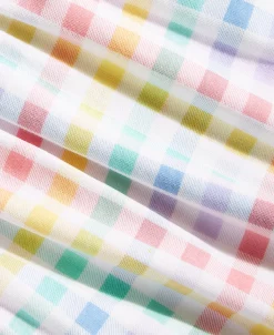 - Bow at neckline; gingham print at skirt and bow