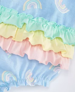 Keep your little one comfortable in this easy-to-care for one piece from First Impressions, designed with a fun allover rainbow print.