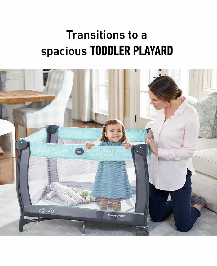 - Play Yards designed to grow with your child’s varying stages from infant to toddler