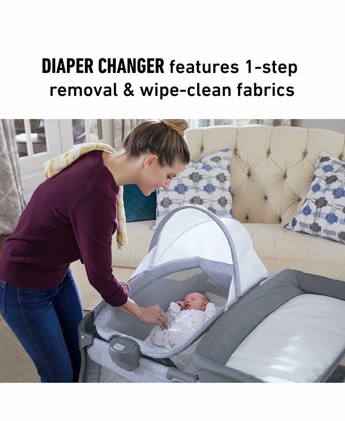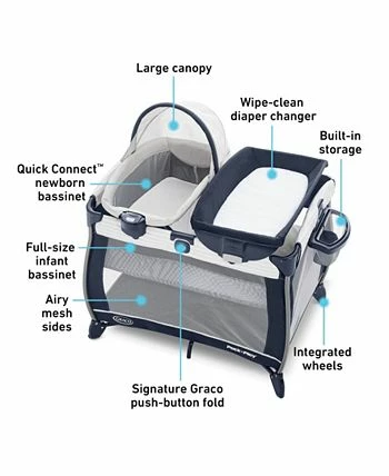 Graco Pack ‘n Play Quick Connect Portable Bassinet Playard features a portable infant bassinet that removes from the playard with one step, so you can keep baby by your side as you move around the home.