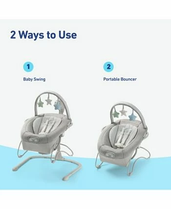 The Graco Soothe and Sway lx swing with portable bouncer, features a multi-direction seat to keep baby soothed and happy.
