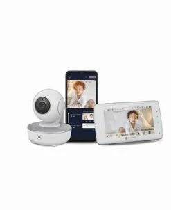 Motorola VM36XL Touch includes a 5″ HD multipoint touchscreen display and a camera with remote pan, tilt, zoom, and night vision. Speak to your little ones with two-way talk, and help them relax with the pre-loaded nature sounds, lullabies, and audiobooks.