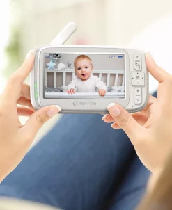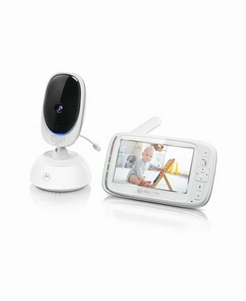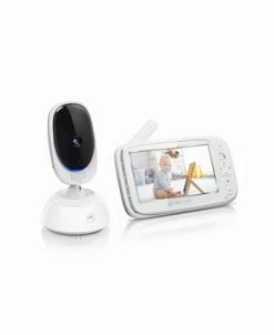 Motorola VM75 includes a 5″ screen and a camera with remote pan, digital tilt and zoom. Speak to your little ones with two-way talk, help them sleep with lullabies, and know if their rooms are too hot or cold with room temperature monitoring.