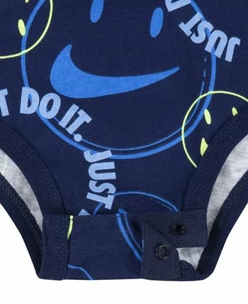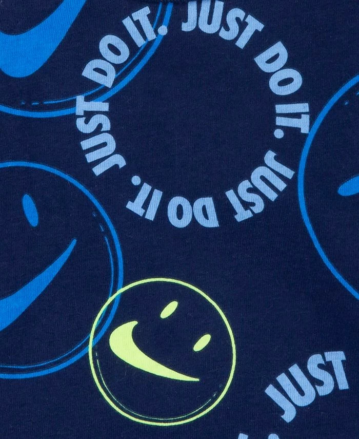 Your little one will love this soft and snug design of the Nike Happy Set. The outfit features a classic jersey fabric bodysuit with a cool allover print and matching baby french terry pants.
