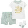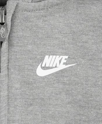 Looking for an easy 3-piece outfit. The Nike set got you covered. The set includes comfy baby French terry full-zip hoodie, a pant and a soft jersey bodysuit.