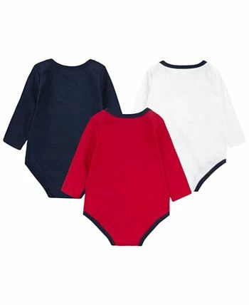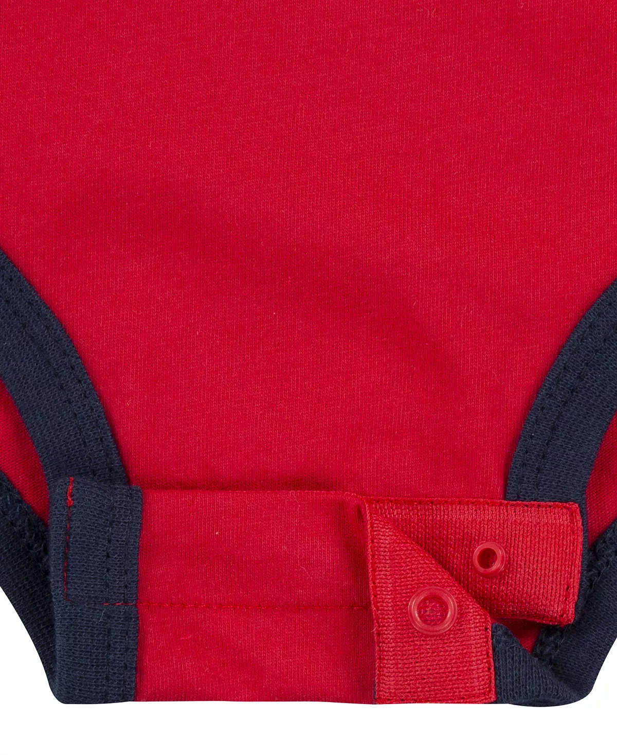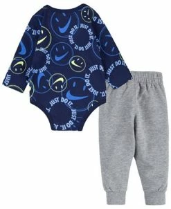 The Nike bodysuit pack includes three soft jersey bodysuits. Each piece feature crew neck, inseam snap closure for easy changing and dressing and a fun Nike logo print.