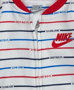 Casual and comfy in soft jersey, this Nike footed coverall features crisp allover stripes for added style.