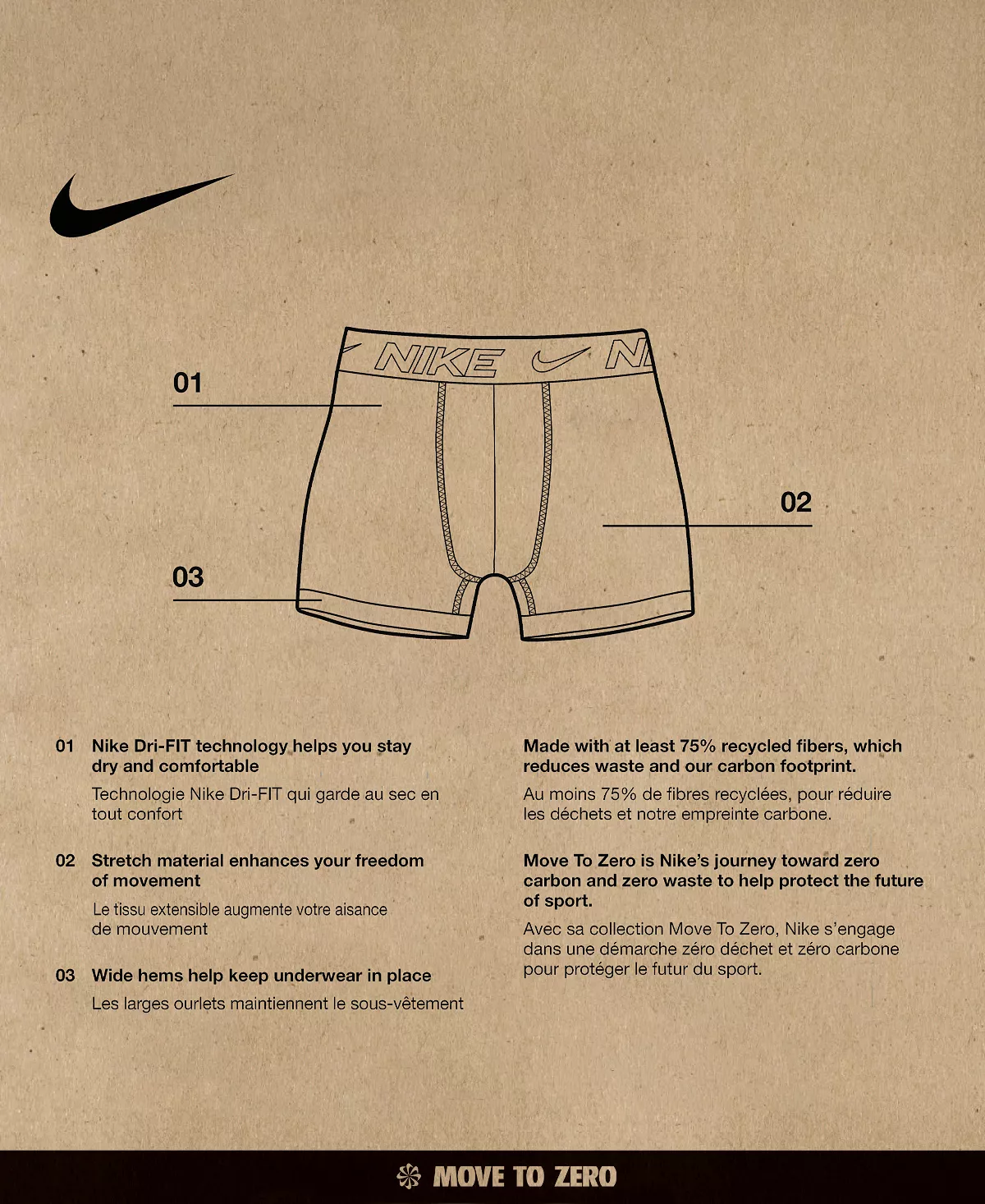 Make your first layer your best. Start the day in the Nike Dri-FIT Essential Micro Boxer Briefs. The soft and stretchy fabric feels comfortable against skin and is made with at least 75% recycled fibers, which reduces our carbon footprint. Move to Zero is Nike’s journey toward zero carbon and zero waste to help protect the future of sport.