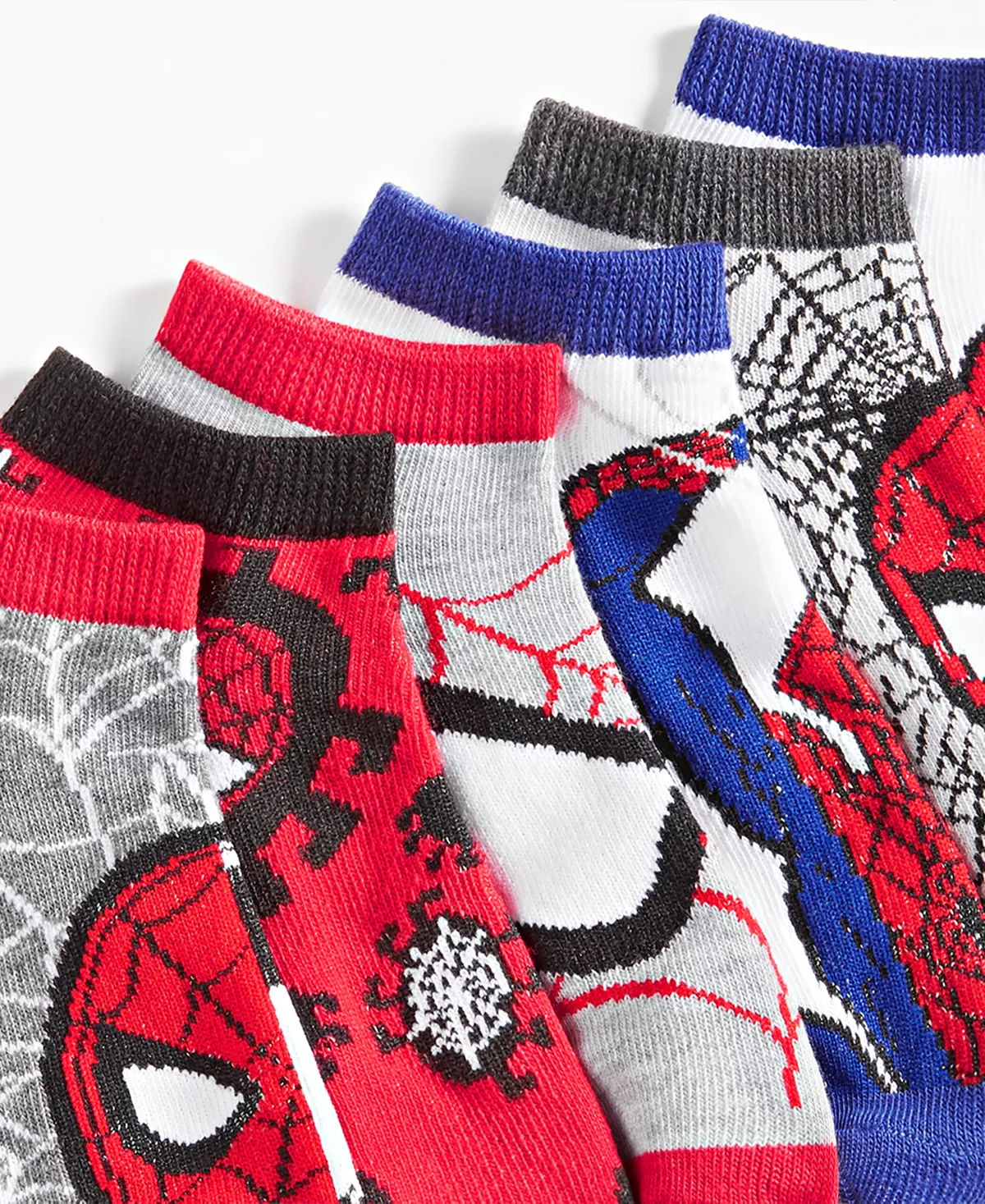 Spiderman spins a hero’s web on this fun six-pack of socks from Marvel.